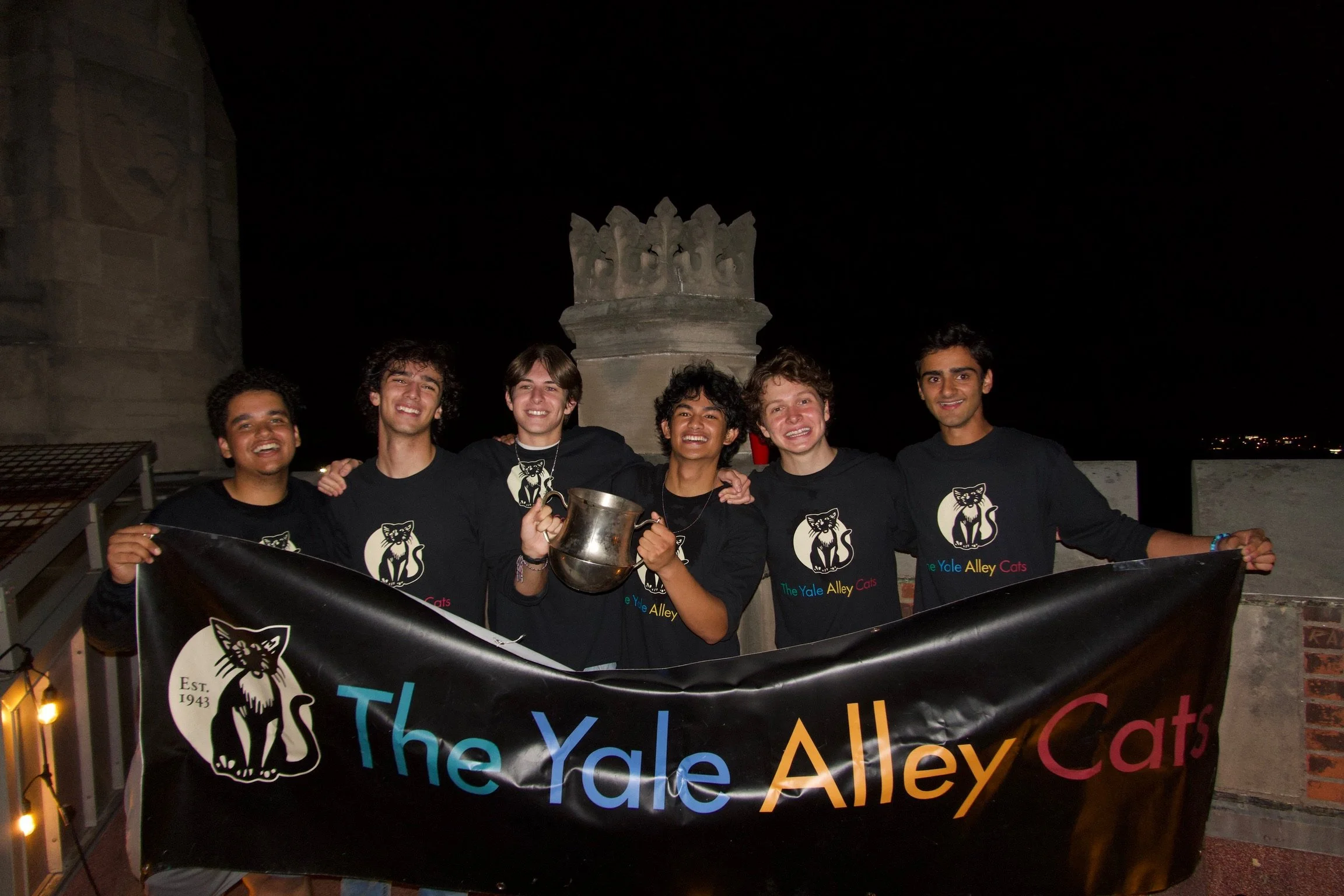 Founded in 1943, the Yale Alley Cats are one of the country’s oldest and most renowned a cappella groups. It all began at the top of Saybrook Tower, where four first-years joined together in song late one autumn night. So beautiful was their singing that the Head of Saybrook College, awoken by the noise, praised the performance as sounding like “a bunch of screeching alley cats”—and so the group was born. Now, 82 years later, the Alley Cats have grown into a close-knit family of over 500 alumni. From jazz standards to Motown classics, the Cats sing it all. The Alley Cats have received their share of accolades, including a Grammy Award shortlist entry, and continue to release a new studio album every two years.